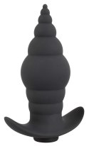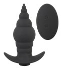 For anal fun alone or with a partner! The vibro-butt plug RC Butt Plug from Black Velvets is in a cone shape, has a stimulating texture and a gentle tip - it's perfect for anal beginners. The 9 diverse vibration modes can be easily adjusted with the remote control - it has a range of 5-10 metres which means that a partner can use it too. The plug's wide base means that a person can guide it to the right spots easily and it also stops the plug from sliding in too far as well. It can therefore also be worn over long periods of time too. The vibro-butt plug is waterproof which means that it can be enjoyed in the bath or the shower. The velvety soft touch texture feels great against the skin during wear and play. It can be recharged with the included USB magnetic charger. Includes a battery (CR2032) for the remote control.Complete length 9.6 cm, insertion length 8.2 cm, Ø max. 3.5 cm. Weight 59 g. Silicone, PU, ABS.