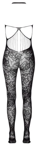 Crotchless off-the-shoulder and backless catsuit by Cottelli FANTASY made of soft fishnet with woven flower pattern. With feet and reinforced toe section. All made seamless and stretchy for high comfort. Beautiful large cut-out in the neckline. Highly elastic halterneck. Additional large cut-out at the back with stretch bands. Crotchless.