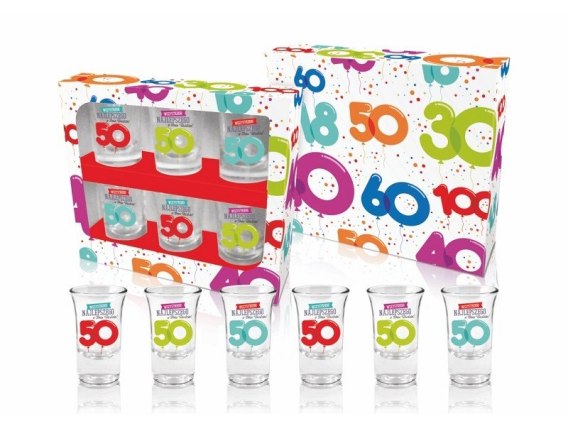 Kieliszki wykonane są ze szkła, a na boku posiadają śliczną kolorową grafikę z napisem "Wszystkiego najlepszego" oraz liczbą, dzięki czemu świetnie sprawdzą się w roli urodzinowego prezentu.