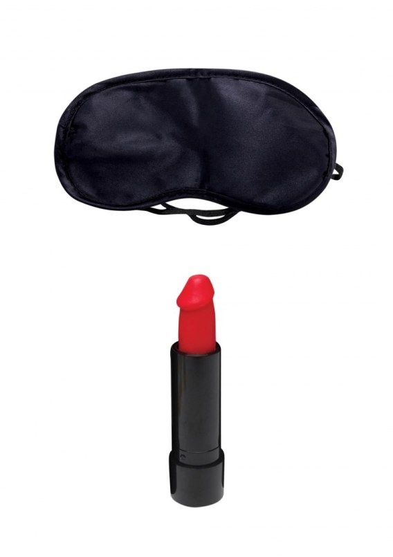 Przezabawny zestaw, który z pewnością urozmaici niejeden wieczór panieński dodając odrobinę erotycznego humoru. Zasady gry: przyszła panna młoda ubiera maskę i smaruje usta czerwoną szminka w oczywistym kształcie- mini peniska. Następnie rozdaje buziaki mężczyźnie na plakacie... ciekawe w jakie miejsca trafi!?
