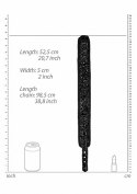 Jeśli potrzebujesz całkowitej kontroli, ta wytrzymała i wygodna obroża na smyczy gwarantuje to wszystko! Posiadająca diamentowy wzór obroża wykonana jest z modnego neoprenu i skóry ekologicznej, a pięć dziurek pozwoli na jak najlepsze dopasowanie. Jej długość wynosi 52,5 cm, a szerokość 5 cm. Wytrzymały czarny łańcuch przyłączany jest za pomocą karabińczyka do pierścienia na obroży. Posiada też wygodny uchwyt.Wymiary opakowanie 17 x 9 x 5 cmWaga opakowanie 250 gramWymiary produktu 52,5 x 5 x 1 cmMasa produktu 220 gramBez ftalanów TakSpecyfikacje Adjustable with 5 holes - 40-47,5cmThe length of the chain is 98,5cmMateriały Vinyl, Faux-leather & Neoprene