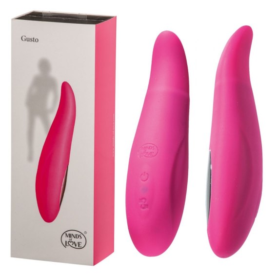 MINDS of LOVE Gusto pinkMocny wibrator z silikonu i tworzywa ABS. Atrakcyjny i ergonomiczny design. Zakrzywiona końcówka idealnie nadaje się do stymulacji punktu G i łechtaczki. 1 mocny silnik zapewnia wyjątkową stymulację. Silnik posiada 8 funkcji (tryby wahadłowe). Łatwa obsługa za pomocą zaledwie 2 przycisków. Miękki, higieniczny, bezwonny, łatwy do czyszczenia, wodoodporny i ładowalny za pomocą kabla USB (adapter nie jest dołączony). Bateria: zintegrowana bateria litowa, czas ładowania: 3-4 godziny. 1 ładowanie baterii wystarcza na około 60 minut, w zależności od sposobu użytkowania zabawki. W komplecie aksamitna torba do przechowywania. Długość całkowita: ok. 17,00 cm, Ø - końcówka: 2,50 cm
