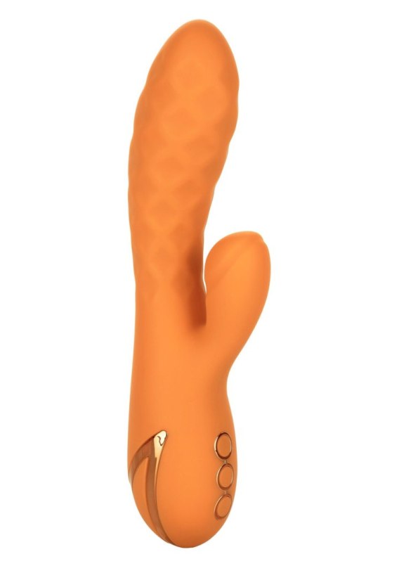 Give yourself over to the motion of the ocean with the California Dreaming® Newport Beach Babe. The luxurious massager has 10 intense teaser thumping functions, 3 shaft vibration speeds and a sensually textured shaft for an earth-shattering pleasure experience.The uniquely contoured teaser is made for a thumping good time with 10 independently controlled thumping pulsations. While the high intensity stimulator thumps, the curved shaft and 3 speeds of vibration deliver knee-shaking g-spot stimulation. Embrace truly customizable pleasure with the rounded teaser’s powerful pulsation and shaft vibration speeds.Recharge the massager in 2.5 hours with the provided USB charging cable to enjoy 40 minutes of high-speed stimulation or 2.5 hours of low speed vibrations. Enjoy frustration-free control with the easy-touch 3-button control pad and security lock feature for travel-ready teasing. The virtually seamless body and self-sealing charging port allow you to get this versatile waterproof vibe for a dip. The hypoallergenic premium silicone is body safe, unscented and phthalate free to keep you most sensitive spots, happy and healthy.