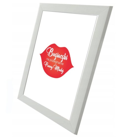 Pamiątkowy biały plakat "Buziaki na pożegnanie Panny Młodej" w ramce. PropaGanda