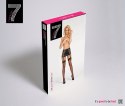 Intrygująca propozycja w bardzo odważnym wydaniu - połączenie błyszczącego wetlook-u, przezroczystego tiulu i srebrnego łańcuszka. Tył zapinany na haftki, podpinki z metalowymi żabkami. Wyprodukowano w Polsce.