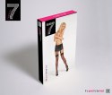 Niezwykle intrygująca propozycja - szeroki pas do pończoch ze skóry z dwoma kokieteryjnymi wiązaniami satynową wstążką po obu stronach pasa. Pod wiązaniem uroku delikatny, prześwitujący tiul. Tył zapinany na haftki. Całość usztywniana fiszbinami dla lepszego wymodelowania i dopasowania do sylwetki. Gumki do pończoch z regulacją zakończone metalowymi żabkami. W komplecie z pończochami. Wyprodukowano w Polsce.