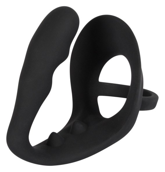 Ten czarny pierścień na penisa nie tylko stymuluje za pomocą wtyczki analnej, ale także za pomocą mostka krocza, który je stymuluje. Czysta przyjemność!