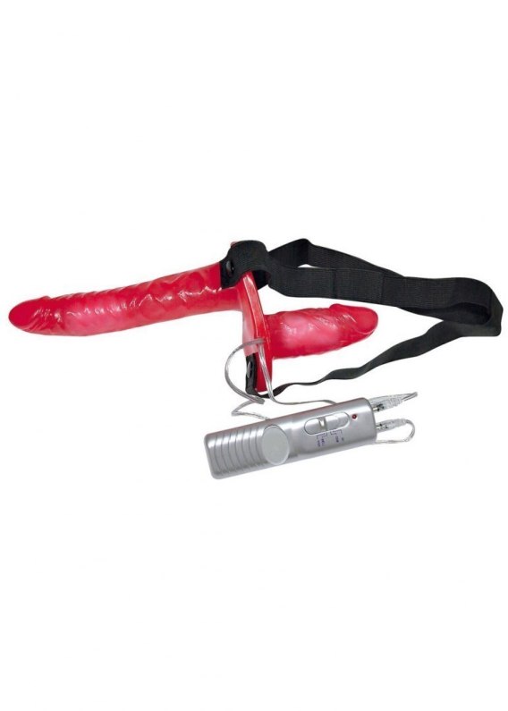 Podwójne strapon 2 wibrujące penisy na paskach 18cm Bad Kitty