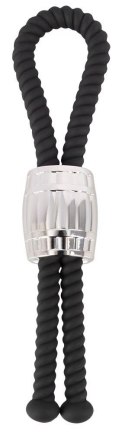 Solidna, czarna pętla na penisa/jądra Heavy Rope Cock Strap od Rebel, zaprojektowana w stylu liny, wyposażona w eleganckie przesuwane metalowe obciążenie (84 g). Pętla może być regulowana, aby dopasować się do penisa, co sprzyja efektowi wzmacniania erekcji dzięki zastoju krwi. Rozciągliwa silikonowa pętla może być również założona na jądra i zaciskana w przyjemny sposób. Z takim (ciężkim) wyposażeniem, nic nie stanie na drodze do długiej, dzikiej zabawy!