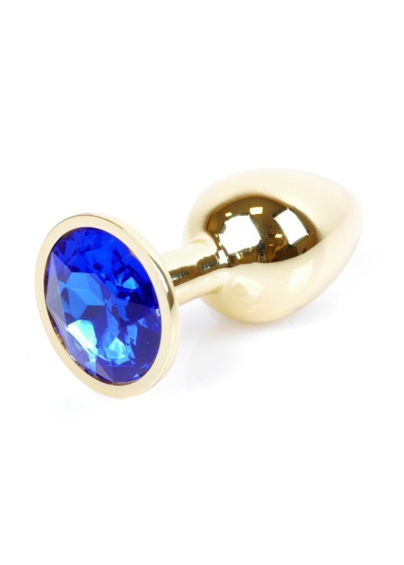Stalowy korek analny plug złoty sex kryształ 7cm niebieski Boss Series HeavyFun