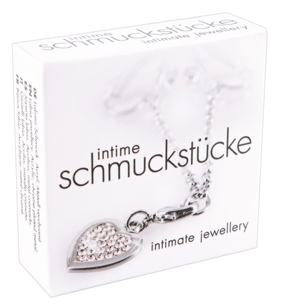Ten intymny naszyjnik w kolorze srebrnym z klipsami warg sromowych jest niezwykle erotyczny, przyciąga wzrok twojego partnera ... Zawieszka (1,5 cm wysokości) w kształcie serca z dekoracją z kryształu górskiego dodatkowo podkreśla TWÓJ region pożądania. Długość całkowita 12,7 cm (w tym klipsy, łańcuszek i zawieszka). Chromowany metal, akryl.