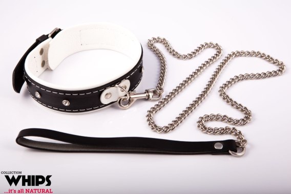 Wiązania - Obroża damska ze smyczą, biała Whips Collections