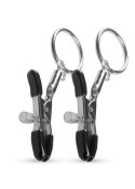 Zaciski zapewniają uczucie ściskania i ciągnięcia sutków. Odkręcając śruby z boku lub obracając je w drugą stronę, możesz zdecydować, jaki nacisk chcesz wywierać na partnera lub własne sutki.