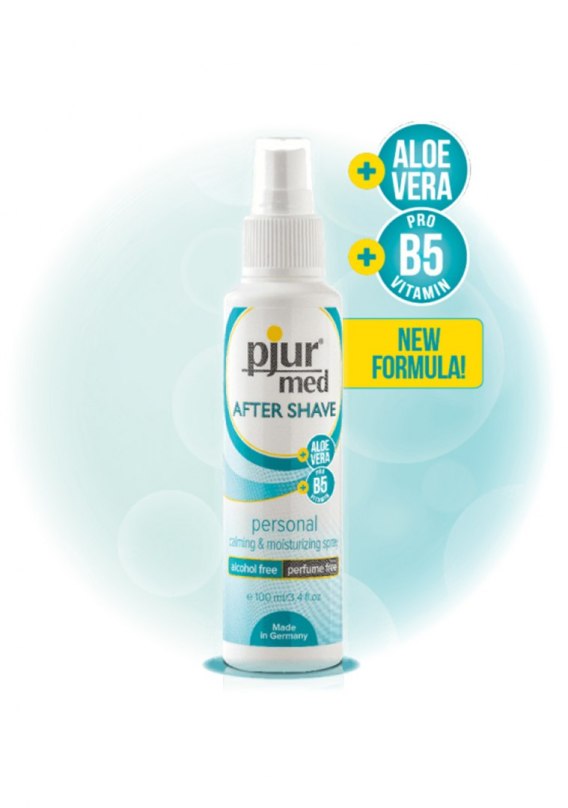 Wielu mężczyzn i kobiet uważa, że włosy w intymnej części ciała są niehigieniczne lub nieestetyczne. Codzienne golenie pod pachami i okolicami intymnymi może powodować nadwrażliwość skóry oraz powodować stany zapalne i niewielkie plamy. Pjur MED After Shave Spray został opracowany w celu rozwiązania takich problemów. Pielęgnuje wrażliwe obszary skóry. Zawiera prowitaminę B5 i aloes, które pomagają nawilżyć i uspokoić podrażnioną skórę. Spray można nakładać wygodnie na podrażnione, ogolone (intymne) części ciała.Jest łatwy w użyciu i ma relaksujący efekt, zapewnia kojące wsparcie dla Twojego regularnego zabiegu upiększającego. Dzięki temu znów możesz czuć się komfortowo w swojej własnej skórze! pjur med AFTER SHAVE spray został stworzony do tej specjalnej pielęgnacji.