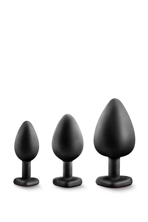 Dzięki temu słodkiemu zestawowi wtyczek Bling Twoja zabawa podczas treningu analnego właśnie stała się ładna! Zaczynając od małego rozmiaru dla początkujących, możesz powoli przejść do rozmiaru średniego, a następnie do dużego, gdy poczujesz się w pełni komfortowo. Ten zestaw zawiera trzy wtyczki, od małych, średnich i dużych. Każda zatyczka ma zwężającą się końcówkę ułatwiającą wkładanie i ciasną szyjkę zapewniającą delikatny nacisk i wydłużone zużycie. Użyj tego zestawu, jeśli ty i twój partner jesteście nowi w zabawie analnej. Lub po prostu używaj go jako dodatek do swojej zwykłej zabawy erotycznej. Aby uzyskać najlepsze wrażenia, używaj z ulubionym, wysokiej jakości lubrykantem na bazie wody, zaprojektowanym z podstawą w kształcie serca i pięknym sztucznym kamieniem w kolorze rubinowej czerwieni. Zestaw treningowy Dostępny w 3 rozmiarach, małym, średnim i dużym Świetne do zapoznania się z zabawą analną Rozszerzony, dzięki czemu wtyczka pozostaje bezpiecznie włożona Bezpieczny dla ciała, satynowy, gładki silikon Długość: Mały 3 cale / 7,6 cm Średni 3,25 cala / 8,2 cm Duży 3,75 cala / 9,5 cm