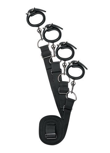 Włóż paski pod materac i niech kajdanki zwisają po bokach.
